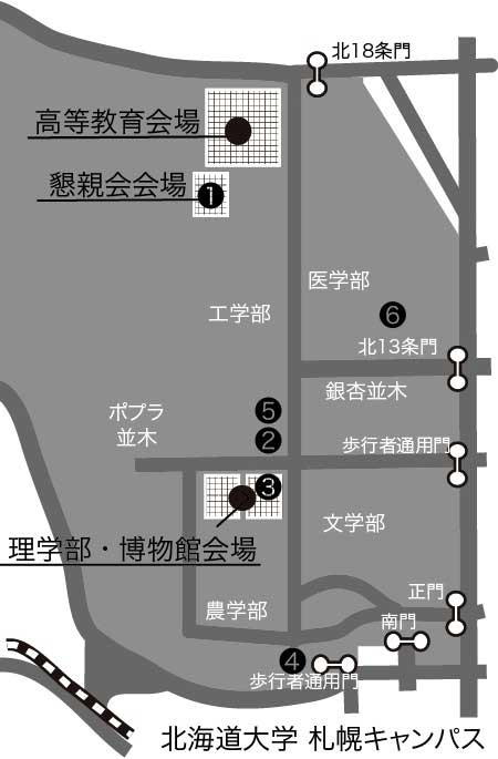 懇親会は18日(日)18:30~20:30に【北大生協「北部食堂」】(口頭発表・ポスター会場の南側)で行います。
